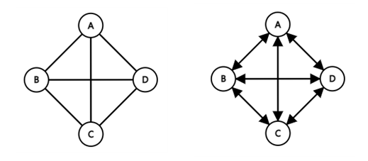 | 무방향 그래프 | 두 정점을 연결하는 간선에 방향이 없는 그래프 |